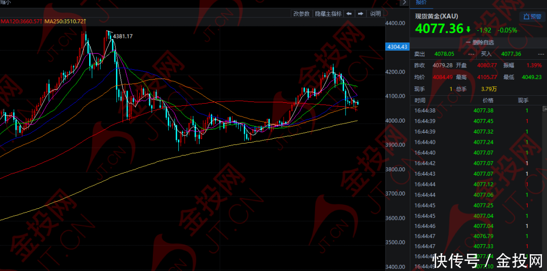 上周五,现货黄金一度触及 4211.06 美元高位,随后大幅回落,一度下跌至 4032.10 美元低点。在经过上周四和上周五大跌之后,上周金价涨幅缩减至2.1%。今日欧市盘中,黄金延续跌势,目前在4077美元附近徘徊。